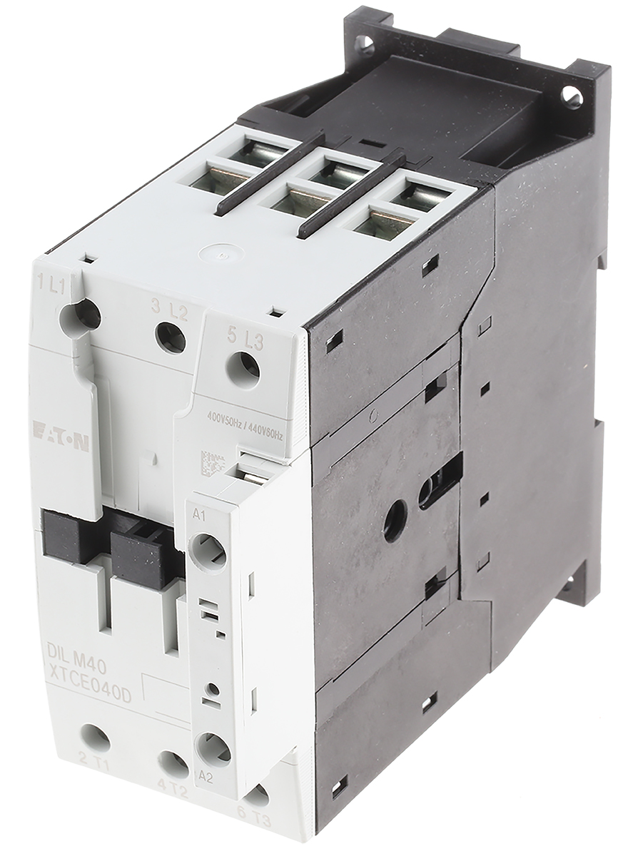 This is xStart DILM 3 Pole Contactor - 40 A 400 V ac Coil 3NO 18.5 kW manufactured by Eaton. The manufacturer part number is 277768 DILM40(400V50HZ,440V60HZ). It has a maximum operating temperature of +45°c. The product eaton moeller, is a highly preferred choice for users. Whereas, the minimum operating temperature of the product is -25°c. The coil voltage of the product is 400 v ac. Its accurate length is 115mm. Furthermore, the product is 77mm wide. The product comes in 147mm depth. It has equipped with 3 poles. The terminal is a screw type.