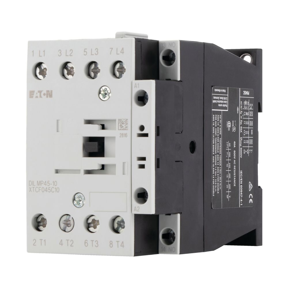 This is DILM Contactor 230 V Coil 4 Pole 14 kW 1N/O manufactured by Eaton. The manufacturer part number is 109825. It performs basic function of reversing. The product dilm, is a highly preferred choice for users. The coil voltage of the product is 230 v. It has equipped with 4 poles.