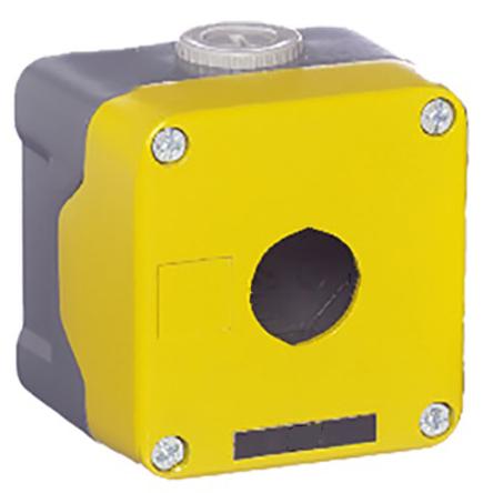 This is Push Button Enclosure 1 Hole Yellow 22.5mm diameter TC Die Cast Aluminium manufactured by RS Pro. The manufacturer part number is 136-8582. The given dimensions of the product include 105 x 68 x 51mm. Its accurate length is 105mm. Furthermore, the product is 68mm wide. The product comes in 51mm depth. Whereas, the minimum operating temperature of the product is -25°c. It has a maximum operating temperature of +70°c.