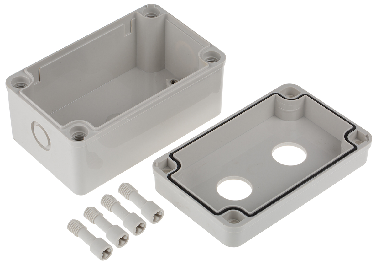 This is Push Button Enclosure 2 Hole Grey 22.5mm Diameter Plastic manufactured by RS PRO. The manufacturer part number is 182-8656. The given dimensions of the product include 70 x 130 x 80mm. Its accurate length is 70mm. Furthermore, the product is 130mm wide. The product comes in 80mm depth. Whereas, the minimum operating temperature of the product is -40°c. It has a maximum operating temperature of +120°c.