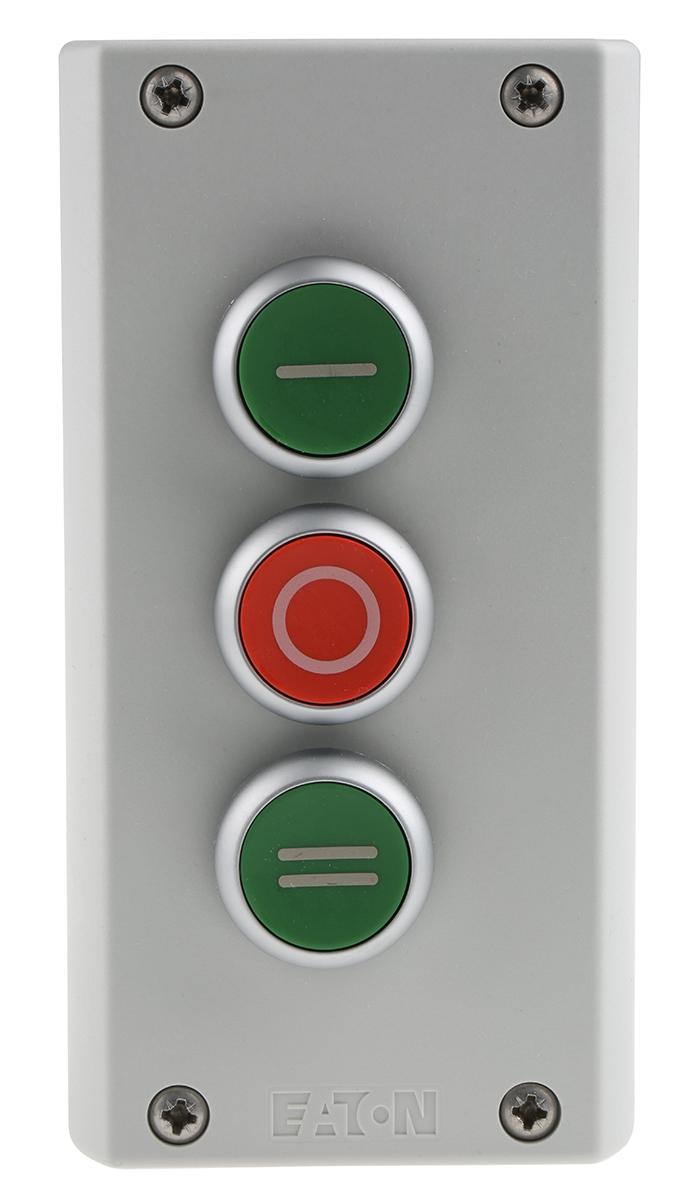 This is Momentary Enclosed Push Button - 3NO/3NC Plastic 3 Cutouts Green/Red/Green I/O/II IP69K manufactured by Eaton. The manufacturer part number is 216532 M22-I3-M1. Whereas, the minimum operating temperature of the product is -25°c. The product eaton moeller, is a highly preferred choice for users. Its accurate length is 153mm. Furthermore, the product is 80mm wide. The product comes in 56mm depth. It has a maximum operating temperature of +70°c. The terminal is a screw type.