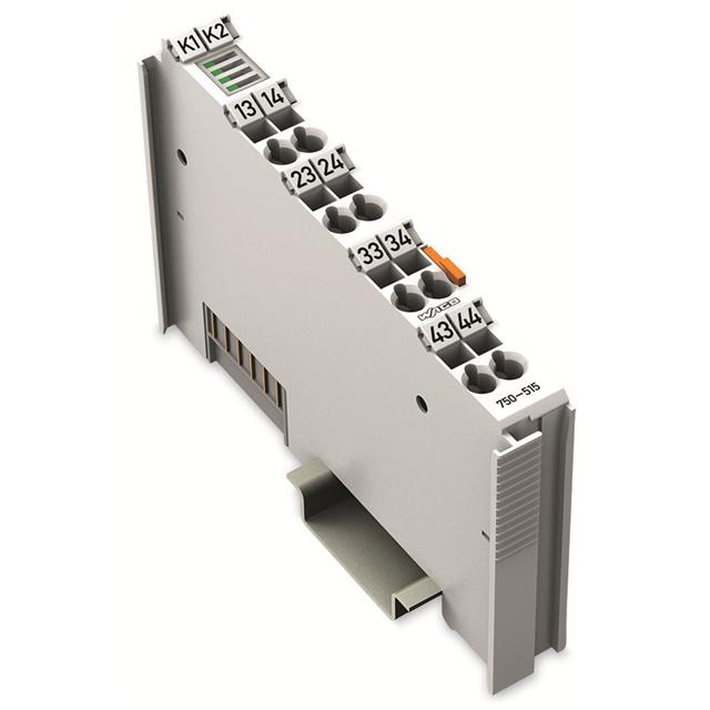 This is manufactured by WAGO Corporation. The manufacturer part number is 750-515. It is assigned with possible HTSUS value of 8536.49.0075. The product is rohs3 compliant. Number and outputs type - 4 - relay. Moreover, it has spring terminal terminal style. The product has 0°c ~ 55°c operating temperature range. It is approved by atex, cccex, eac, iecex, inmetro, kc, ul. The product is available in din rail configuration. It comes in output module configuration. It is shipped in box. Its typical moisture sensitivity level is not applicable. It is IP rated with ip20. The product 750, is a highly preferred choice for users. It has optimum voltage supply of 5vdc. The product is suitable for use with 750 series. The product is designated with the ear99 code number