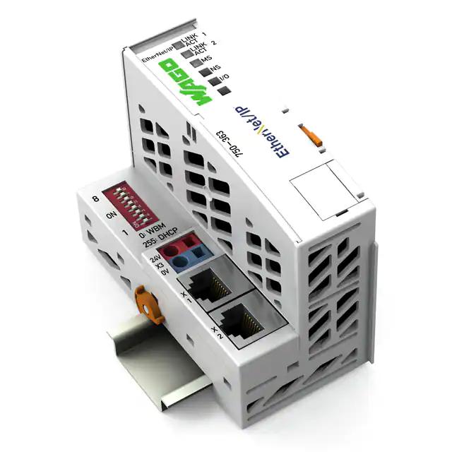 This is manufactured by WAGO Corporation. The manufacturer part number is 750-363. It is assigned with possible HTSUS value of 8537.10.9170. The product is rohs3 compliant. Moreover, it has rj-45 terminal style. The product has 0°c ~ 55°c operating temperature range. It is approved by atex, cccex, eac, iecex, inmetro, kc, ul. The product is available in din rail configuration. It comes in communications module configuration. It is shipped in box. Its typical moisture sensitivity level is not applicable. It is IP rated with ip20. The product 750, is a highly preferred choice for users. It has optimum voltage supply of 24vdc. The product is suitable for use with 750 series. The product is designated with the ear99 code number
