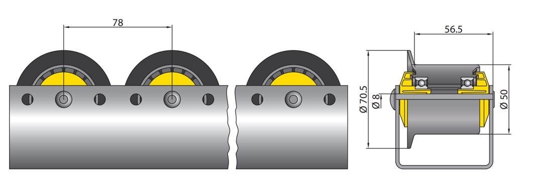 This is Polyamide Round Flanged Conveyor Roller 50mm x 51.3mm manufactured by Interroll. The manufacturer part number is 2910.