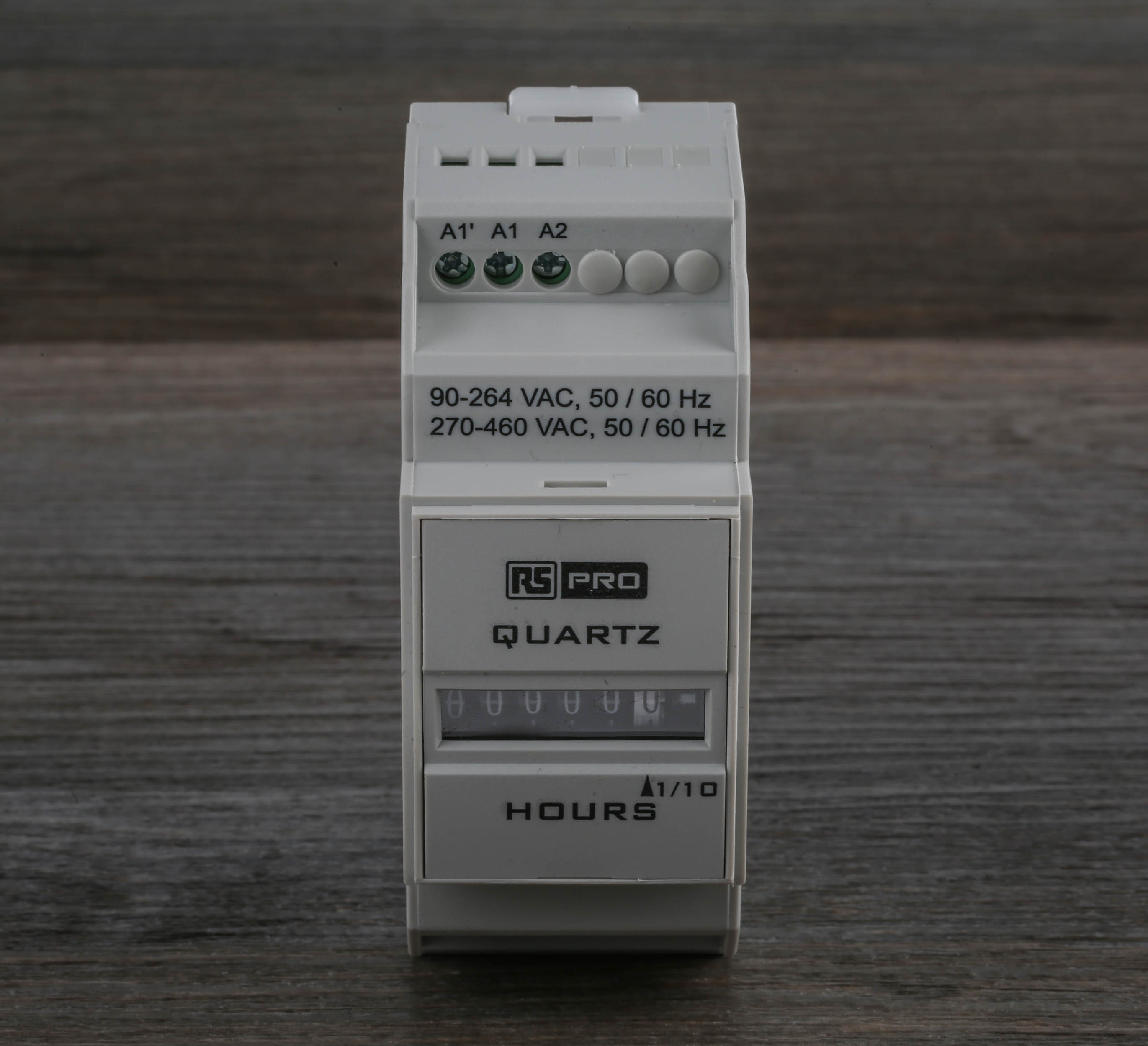 This is Hour Counter 6 digits Digital Spade Terminal Connection 270 → 460 V ac 90 → 264 V ac manufactured by RS Pro. The manufacturer part number is 896-6945. It carries voltage input type. It performs basic function of hour meter. The product complies with ce, rohs. The product comes in 45mm depth. It features a remarkable analogue display. The typical product's weight is 70g. The product is available in din rail configuration. Whereas, the minimum operating temperature of the product is -5°c.