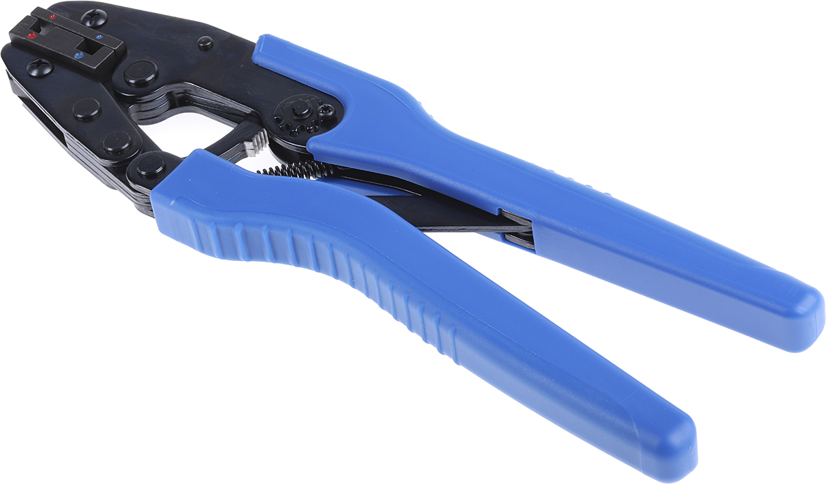 This is Crimping Tool for Flag Terminal 16 → 14 AWG 22 → 16 AWG manufactured by RS Pro. The manufacturer part number is 125-1966. Ratcheting Options - yes.