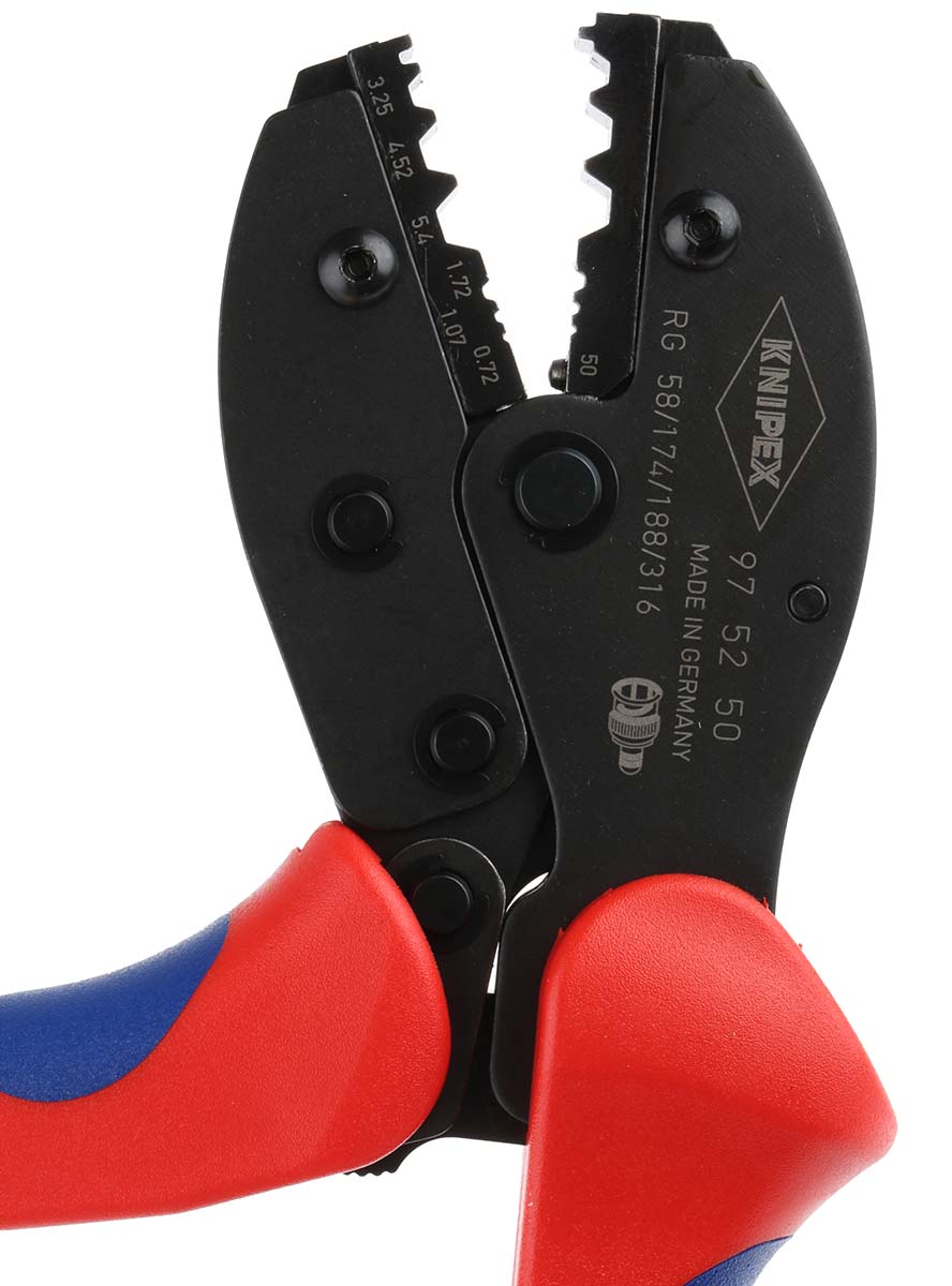 This is Crimping Tool for BNC TNC RG136 RG174 RG188 RG58 manufactured by Knipex. The manufacturer part number is 97 52 50. The product preciforce®, is a highly preferred choice for users. Ratcheting Options - yes. bnc, tnc Connector type offer robust functionality.
