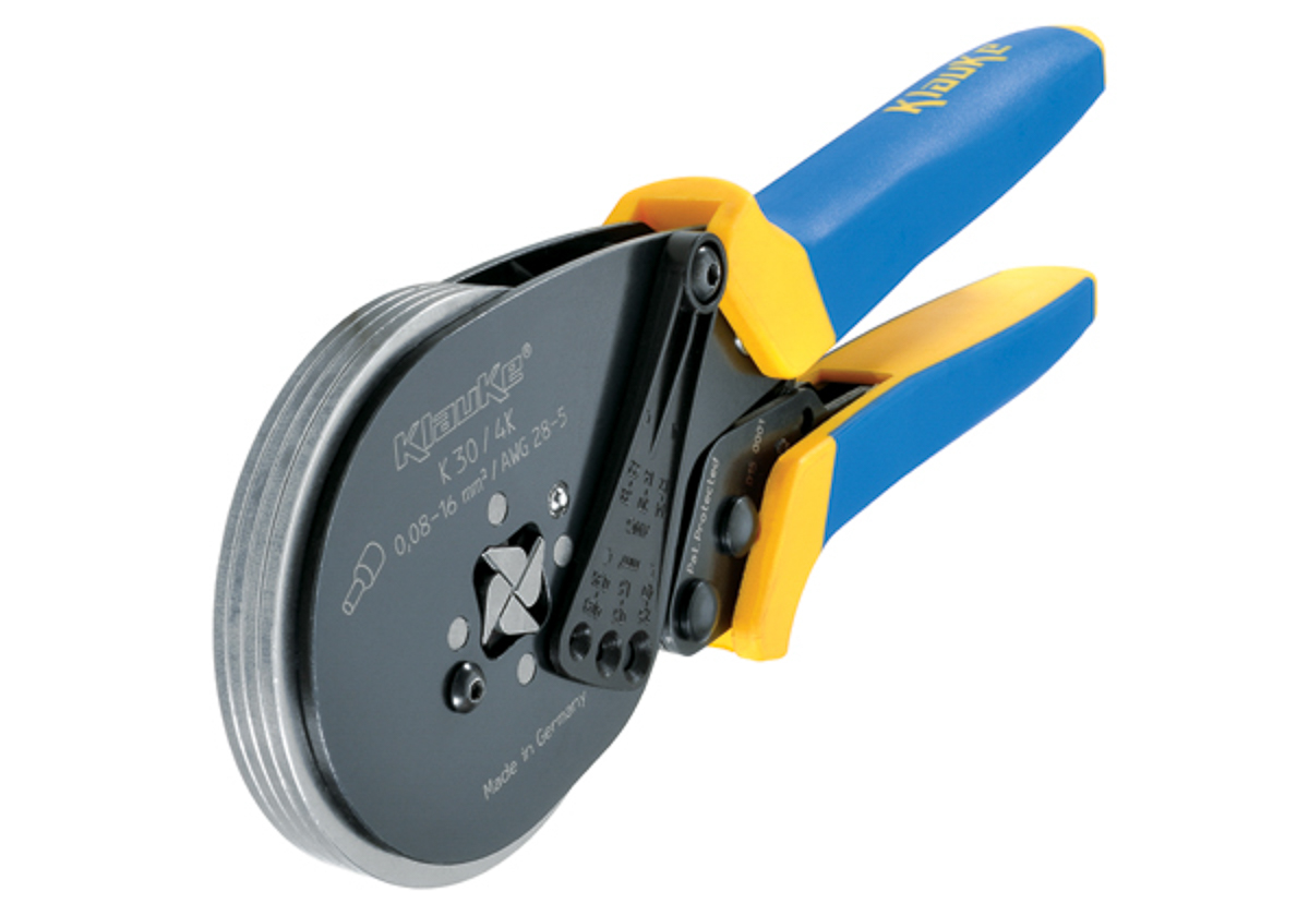 This is Ratchet hand tool for cable end sleeves manufactured by Klauke. The manufacturer part number is K304K. Ratcheting Options - yes.