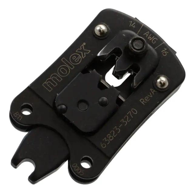 This is manufactured by Molex. The manufacturer part number is 0638233270. It is assigned with possible HTSUS value of 8207.90.7585. The product is rohs3 compliant. In addition, it is reach unaffected. This is basically a useful and handy crimp head. It is shipped in bulk. Its typical moisture sensitivity level is 1 (unlimited). The compatible tools include 63816-0100, 63816-0200, 63823-3200. It has a long 7 weeks standard lead time. The product premiumgrade, sabre, is a highly preferred choice for users. The product is suitable for use with rectangular contacts, 14-16 awg. Moreover, it corresponds to 063823, a base product number of the product. The product is designated with the ear99 code number