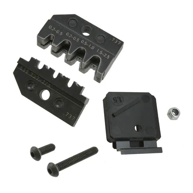 This is manufactured by TE Application Tooling. The manufacturer part number is 539737-2. The product is suitable for use with rectangular contacts, 13-24 awg. This is basically a useful and handy die set. It is assigned with possible HTSUS value of 8207.90.7585. It is shipped in bulk. The product ergocrimp, junior power timer, is a highly preferred choice for users. The product is not applicable. Its typical moisture sensitivity level is not applicable. Moreover, it corresponds to 539737, a base product number of the product. The compatible tools include 539635-1. The product is designated with the ear99 code number