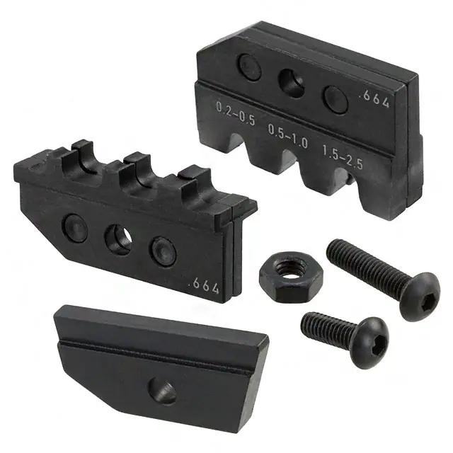 This is manufactured by TE Application Tooling. The manufacturer part number is 539664-2. The product is suitable for use with rectangular contacts, 14-24 awg. This is basically a useful and handy die set. It is assigned with possible HTSUS value of 8207.90.7585. It is shipped in box. The product ergocrimp, junior power timer, is a highly preferred choice for users. The product is not applicable. Its typical moisture sensitivity level is 1 (unlimited). Moreover, it corresponds to 539664, a base product number of the product. The compatible tools include 539635-1. The product is designated with the ear99 code number