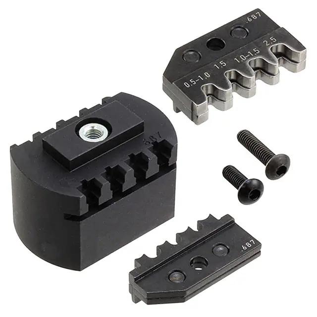 This is manufactured by TE Application Tooling. The manufacturer part number is 539687-2. The product is suitable for use with rectangular contacts, 14-20 awg. This is basically a useful and handy die set. It is assigned with possible HTSUS value of 8207.90.7585. It is shipped in bulk. The product ergocrimp, junior and standard power timer, is a highly preferred choice for users. The product is not applicable. Its typical moisture sensitivity level is 1 (unlimited). Moreover, it corresponds to 539687, a base product number of the product. The compatible tools include 539635-1. The product is designated with the ear99 code number