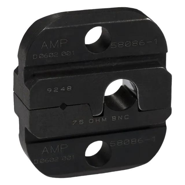 This is manufactured by TE Application Tooling. The manufacturer part number is 58086-1. The product is suitable for use with coaxial, rf - bnc. This is basically a useful and handy die set. It is assigned with possible HTSUS value of 8203.20.8000. It is shipped in bulk. Specifications include diamond - 0.044"; round - 0.265". The product pro-crimper iii, is a highly preferred choice for users. The product is not applicable. Its typical moisture sensitivity level is not applicable. Moreover, it corresponds to 58086, a base product number of the product. The compatible tools include 354940-1. Cable Group Options: belden 9248. The product is designated with the ear99 code number