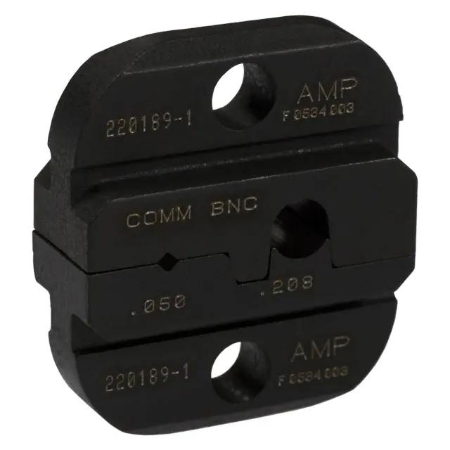 This is manufactured by TE Application Tooling. The manufacturer part number is 220189-1. The product is suitable for use with coaxial, rf - bnc, tnc. This is basically a useful and handy die set. It is assigned with possible HTSUS value of 8203.20.8000. It is shipped in bulk. The product pro-crimper iii, is a highly preferred choice for users. The product is not applicable. Its typical moisture sensitivity level is 1 (unlimited). Moreover, it corresponds to 220189, a base product number of the product. The compatible tools include 354940-1. It has a long 11 weeks standard lead time. Cable Group Options: rg-55, 58, 141, 142, 223, 303, 400. The product is designated with the ear99 code number