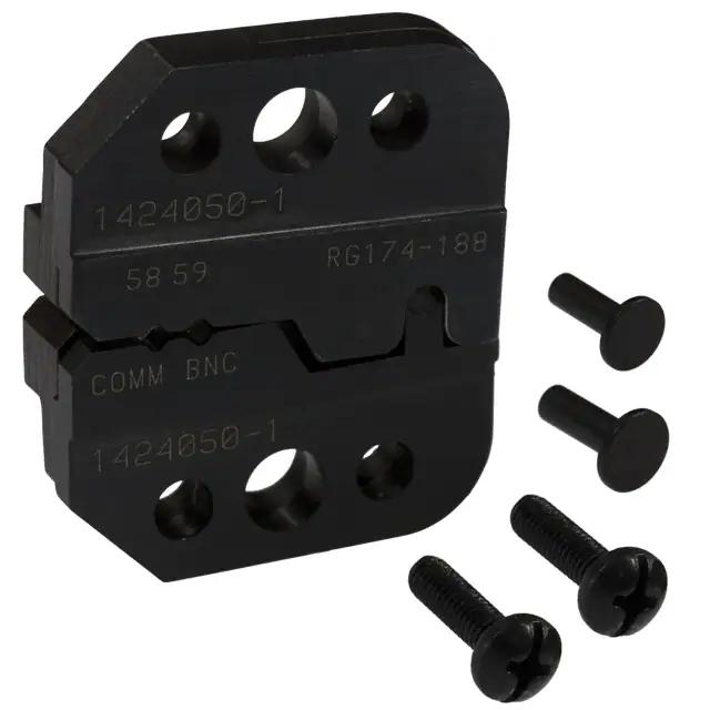 This is manufactured by TE Application Tooling. The manufacturer part number is 1424050-1. The product is suitable for use with coaxial, rf - bnc. This is basically a useful and handy die set. It is assigned with possible HTSUS value of 8207.90.7585. It is shipped in bulk. Specifications include diamond - 0.044", 0.050"; round - 0.104", 0.170". The product pro-crimper iii, is a highly preferred choice for users. The product is not applicable. Its typical moisture sensitivity level is 1 (unlimited). Moreover, it corresponds to 1424050, a base product number of the product. The compatible tools include 354940-1, 9-1478240-0. It has a long 10 weeks standard lead time. Cable Group Options: rg-58, 59, 174, 188. The product is designated with the ear99 code number