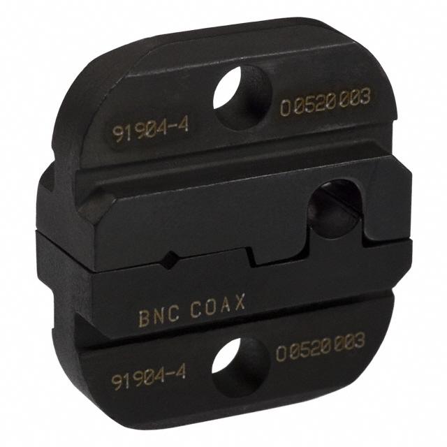 This is manufactured by TE Application Tooling. The manufacturer part number is 91904-4. The product is suitable for use with coaxial, rf - bnc. This is basically a useful and handy die set. It is assigned with possible HTSUS value of 8207.90.7585. It is shipped in bulk. Specifications include diamond - 0.050"; round - 0.199". The product pro-crimper iii, coaxicon, is a highly preferred choice for users. The product is not applicable. Its typical moisture sensitivity level is not applicable. Moreover, it corresponds to 91904, a base product number of the product. The compatible tools include 354940-1. It has a long 10 weeks standard lead time. Cable Group Options: rg-58. The product is designated with the ear99 code number