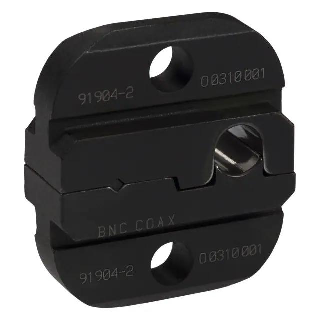 This is manufactured by TE Application Tooling. The manufacturer part number is 91904-2. The product is suitable for use with coaxial, rf - bnc. This is basically a useful and handy die set. It is assigned with possible HTSUS value of 8207.90.7585. It is shipped in bulk. Specifications include diamond - 0.050"; round - 0.244". The product pro-crimper iii, coaxicon, is a highly preferred choice for users. The product is not applicable. Its typical moisture sensitivity level is not applicable. Moreover, it corresponds to 91904, a base product number of the product. The compatible tools include 354940-1. It has a long 10 weeks standard lead time. Cable Group Options: rg-59, 62. The product is designated with the ear99 code number