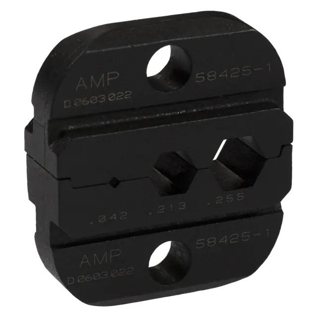 This is manufactured by TE Application Tooling. The manufacturer part number is 58425-1. The product is suitable for use with coaxial, rf - bnc, tnc. This is basically a useful and handy die set. It is assigned with possible HTSUS value of 8203.20.8000. It is shipped in bulk. Specifications include hex - 0.213", 0.255"; square - 0.042". The product pro-crimper iii, is a highly preferred choice for users. The product is not applicable. Its typical moisture sensitivity level is not applicable. Moreover, it corresponds to 58425, a base product number of the product. The compatible tools include 1490076-2, 2031450-1, 2031460-1, 354940-1, 679304-1, 9-1478240-0. It has a long 11 weeks standard lead time. Cable Group Options: rg-59, 62. The product is designated with the ear99 code number