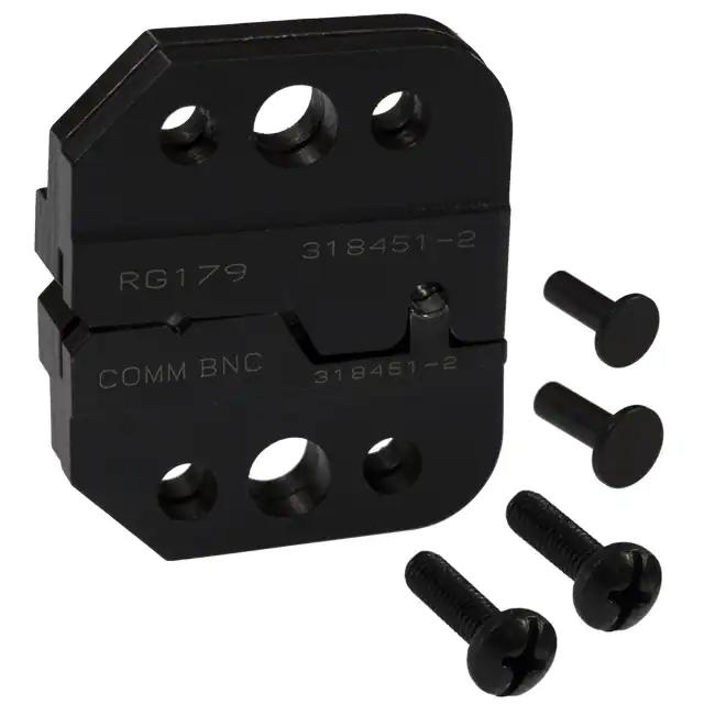 This is manufactured by TE Application Tooling. The manufacturer part number is 318451-2. The product is suitable for use with coaxial, rf - bnc. This is basically a useful and handy die set. It is assigned with possible HTSUS value of 8203.20.8000. It is shipped in bulk. Specifications include diamond - 0.041" ~ 0.046"; round - 0.104". The product pro-crimper iii, is a highly preferred choice for users. The product is not applicable. Its typical moisture sensitivity level is not applicable. Moreover, it corresponds to 318451, a base product number of the product. The compatible tools include 354940-1. It has a long 10 weeks standard lead time. Cable Group Options: rg-161, 179, 187. The product is designated with the ear99 code number