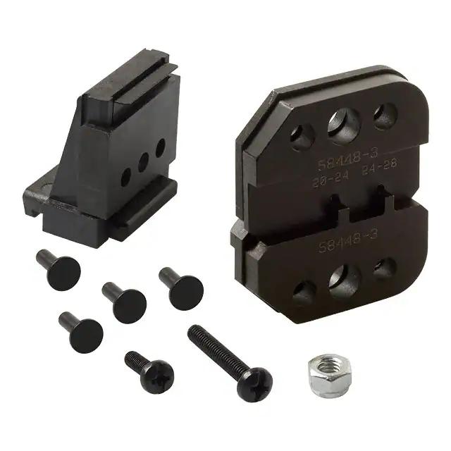 This is manufactured by TE Application Tooling. The manufacturer part number is 58448-3. The product is suitable for use with circular and d-sub contacts, 20-28 awg. This is basically a useful and handy die set. It is assigned with possible HTSUS value of 8207.30.6062. It is shipped in bulk. The product pro-crimper iii, amplimite, is a highly preferred choice for users. The product is not applicable. Its typical moisture sensitivity level is not applicable. Moreover, it corresponds to 58448, a base product number of the product. The compatible tools include 1213890-1, 1213890-2, 1490076-2, 354940-1, 679304-1, 9-1478240-0. It has a long 11 weeks standard lead time. The product is designated with the ear99 code number