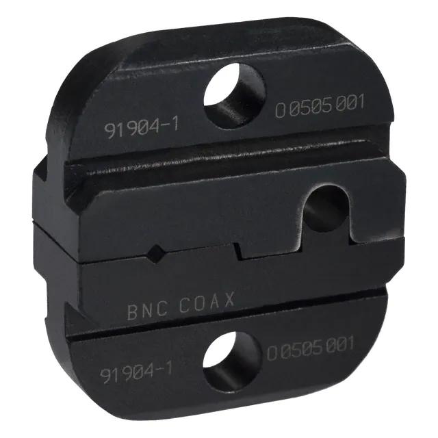 This is manufactured by TE Application Tooling. The manufacturer part number is 91904-1. The product is suitable for use with coaxial, rf - bnc. This is basically a useful and handy die set. It is assigned with possible HTSUS value of 8207.90.7585. It is shipped in bulk. Specifications include diamond - 0.050"; round - 0.170". The product pro-crimper iii, coaxicon, is a highly preferred choice for users. The product is not applicable. Its typical moisture sensitivity level is not applicable. Moreover, it corresponds to 91904, a base product number of the product. The compatible tools include 354940-1. It has a long 10 weeks standard lead time. Cable Group Options: rg-187. The product is designated with the ear99 code number