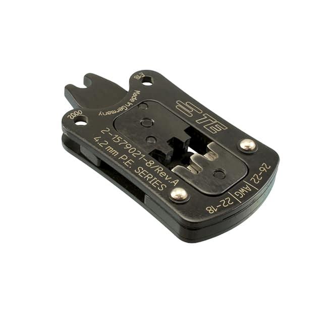 This is manufactured by TE Application Tooling. The manufacturer part number is 2-1579021-8. The product is suitable for use with rectangular contacts, 18-26 awg. This is basically a useful and handy crimp head. It is assigned with possible HTSUS value of 8207.90.7585. It is shipped in box. The product mini certi-lok, is a highly preferred choice for users. The product is not applicable. Its typical moisture sensitivity level is 1 (unlimited). Moreover, it corresponds to 1579021, a base product number of the product. The compatible tools include 2-1579005-1, 2-1579005-2. The product is designated with the ear99 code number