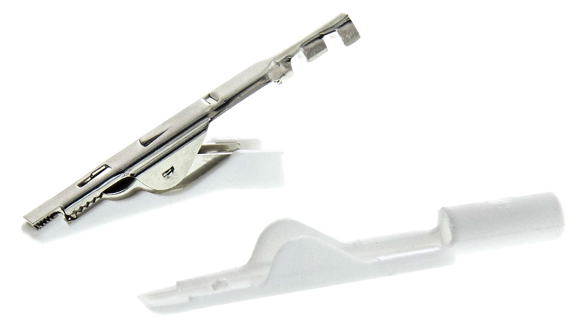 This is Crocodile Clip Brass Bronze Contact 8A White manufactured by Hirschmann Test & Measurement. The manufacturer part number is 930318107. The product has a current rating of 8a. It has a robust pp insulation material. The product is made from sturdy brass, bronze materials.