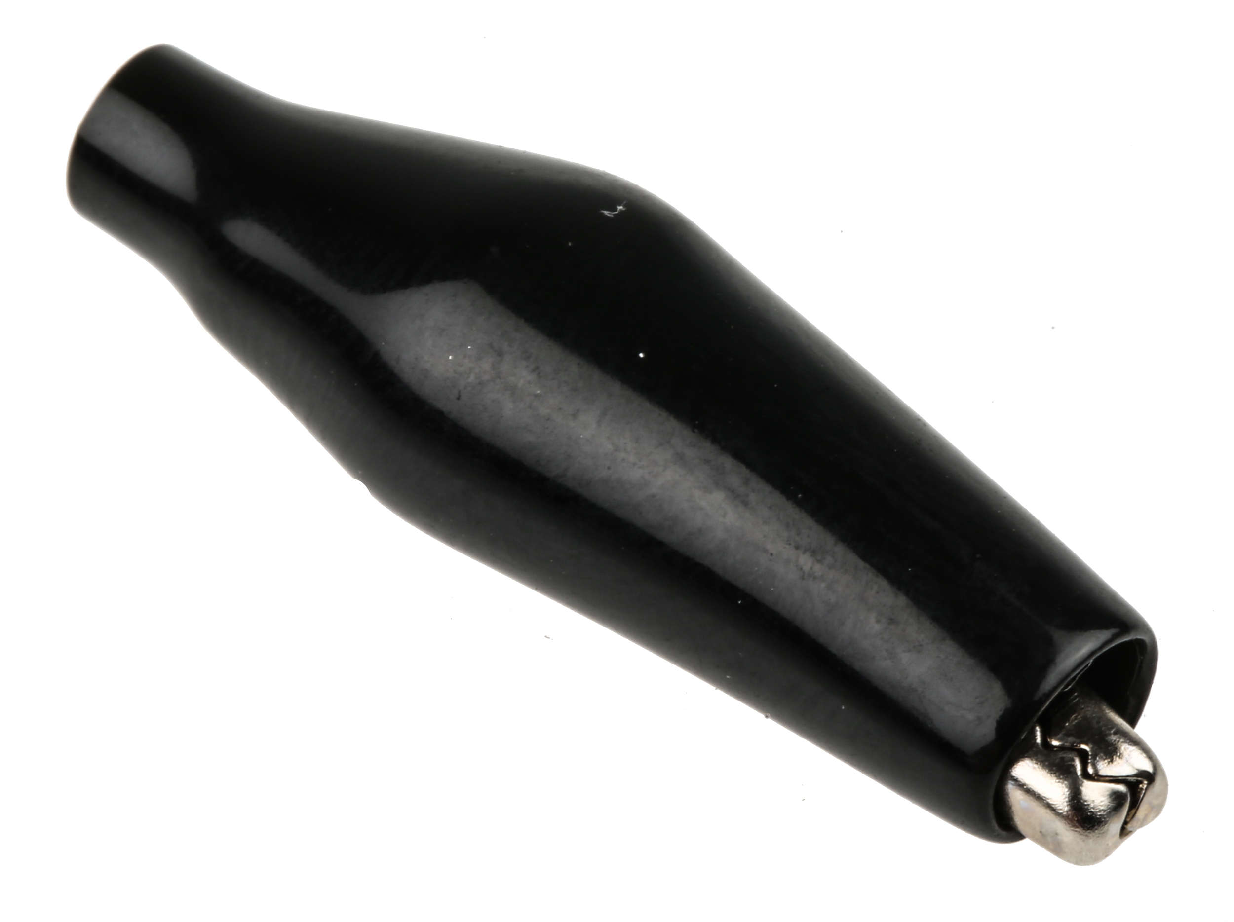 This is Alligator Clip Iron Contact Black manufactured by RS Pro. The manufacturer part number is 738-5850. It has a robust pvc insulation material. The product is made from sturdy nickel-plated steel materials.