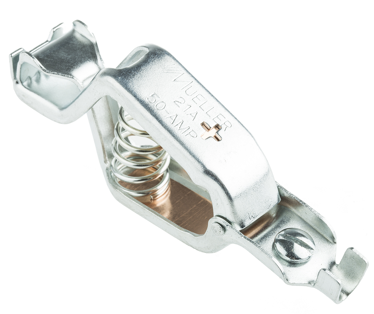 This is Mueller Grabber Clip Zinc-Plated Steel Contact 50A Natural manufactured by Mueller Electric. The manufacturer part number is BU-21APS. The product has a current rating of 50a. The product is made from sturdy zinc-plated steel materials.