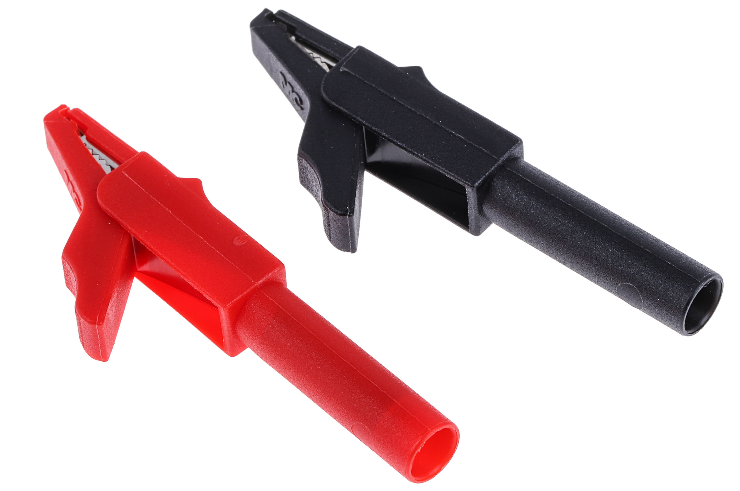 This is Multi Contact Crocodile Clip Brass Contact 15A Black Red manufactured by Staubli. The manufacturer part number is 24.0157-22 24.0157-21. The product has a current rating of 15a. 4 mm Connector type offer robust functionality. The product is made from sturdy brass materials.