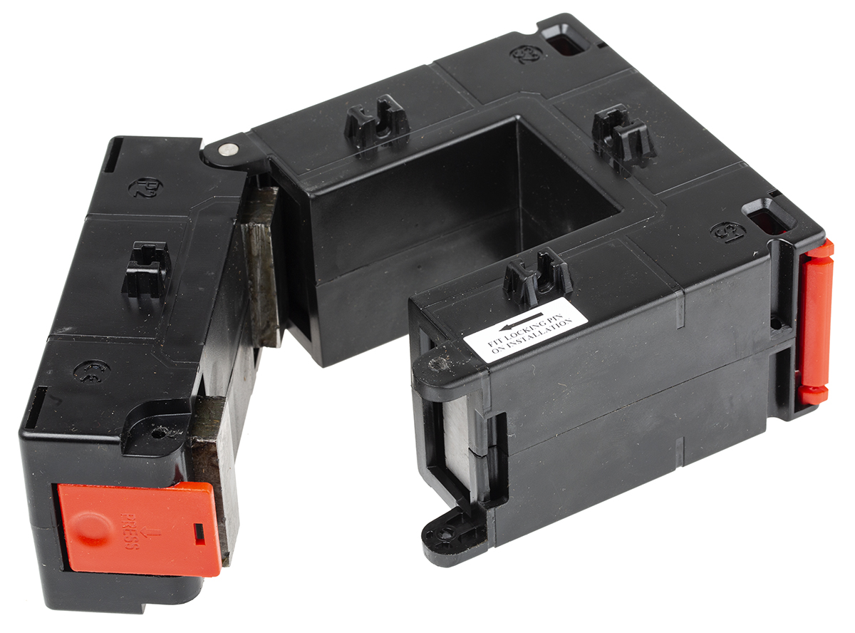 This is Omega Split Core Base Mounted Current Transformer 600A Input 5 A Output 600:5 manufactured by RS Pro. The manufacturer part number is 171-8854. The given dimensions of the product include 108 x 51 x 125 mm. The product is available in surface mount configuration. It is a base mounted transformer.