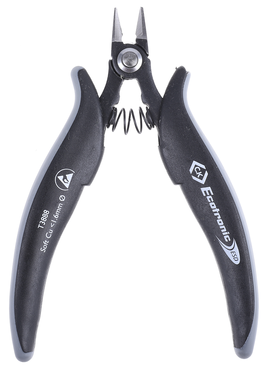 This is Cutters 135 mm manufactured by CK. The manufacturer part number is T3888. It comes in electronics side cutter configuration.