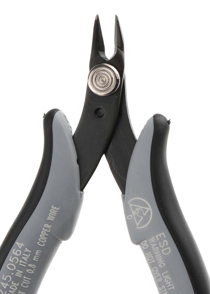 This is Flush Type Wire Cutter 132mm overall length 0.81mm cutting capacity manufactured by RS Pro. The manufacturer part number is 245-0564. It comes in electronics side cutter configuration.