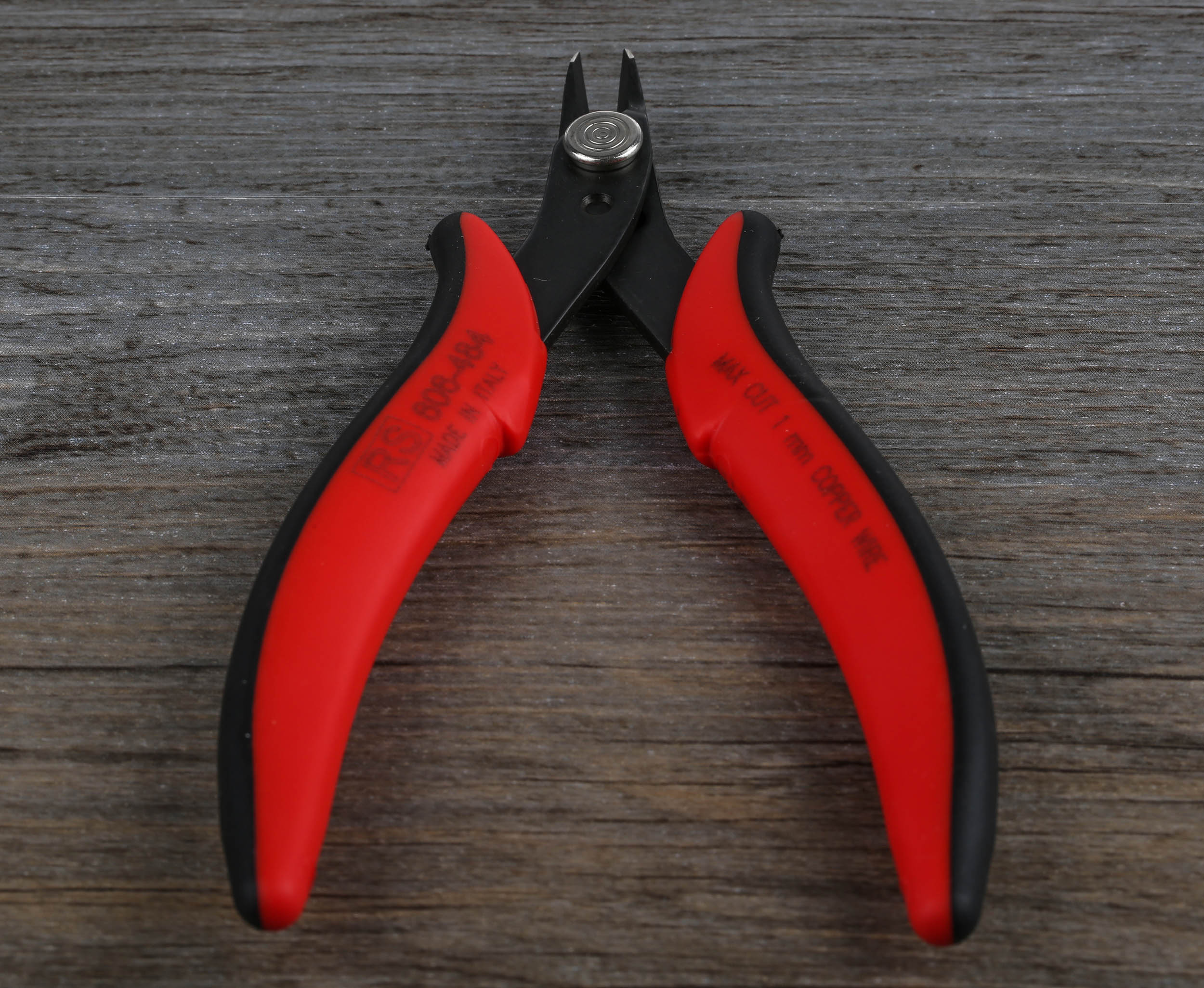 This is Flush Type Wire Cutter 133mm overall length 1mm cutting capacity manufactured by RS Pro. The manufacturer part number is 606-484. It comes in electronics side cutter configuration.