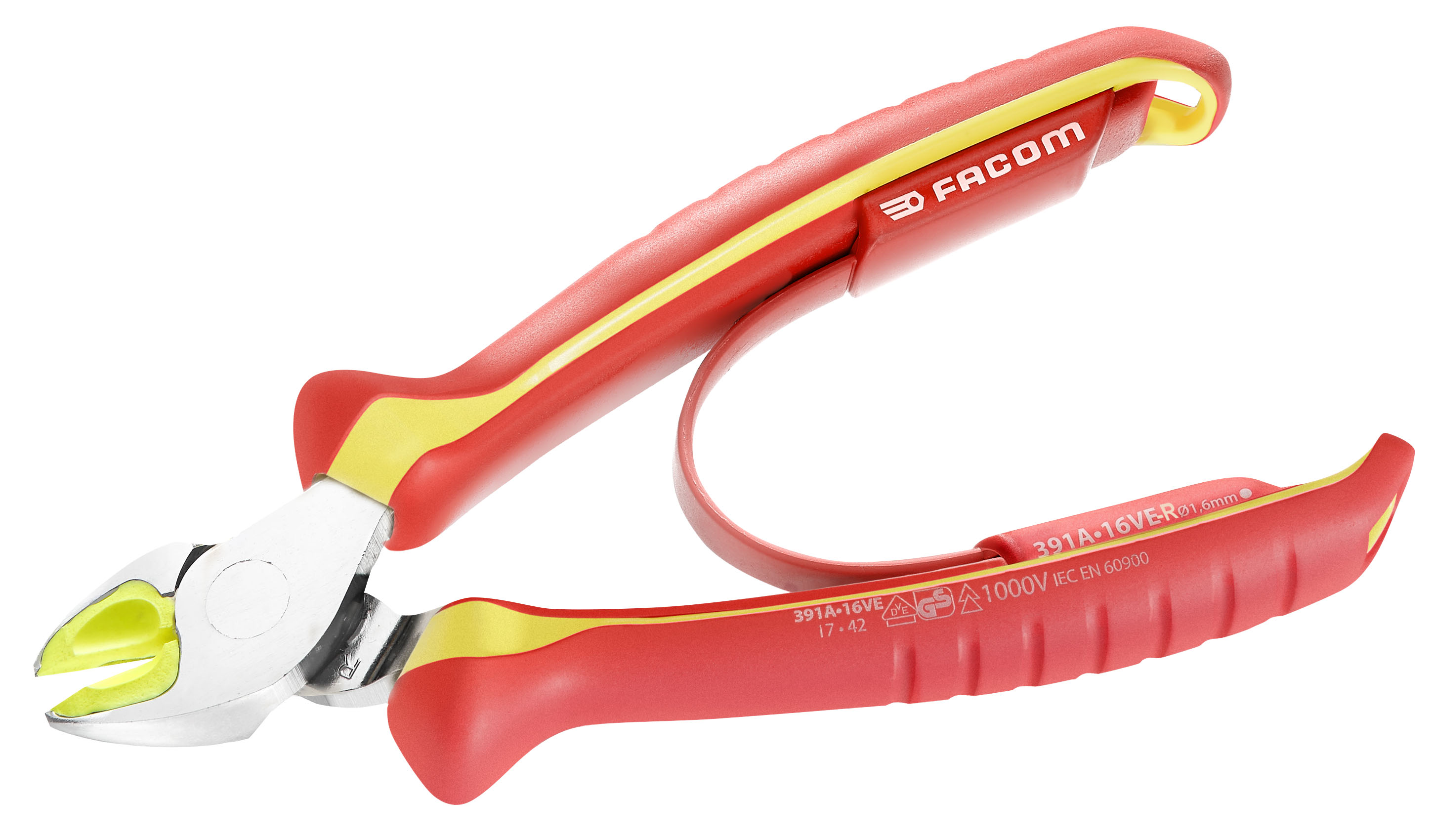 This is VDE/1000V Insulated 165 mm Diagonal manufactured by Facom. The manufacturer part number is 391A.16VE-RPF. The product is made from highly stable and reliable chrome molybdenum steel. It comes in diagonal cutter configuration.
