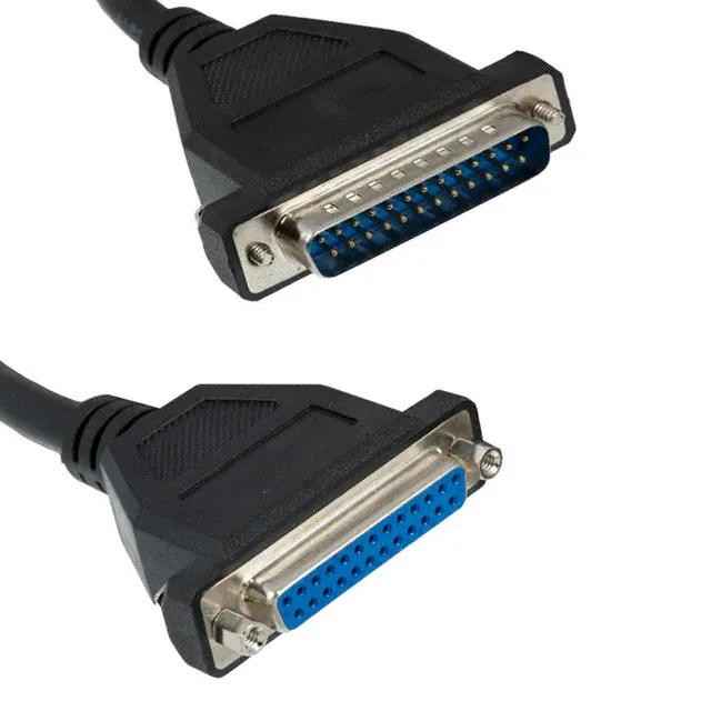 This is manufactured by American Electrical Inc.. The manufacturer part number is LDSUB-25-MF-CBL. It is assigned with possible HTSUS value of 8544.42.9090. The product is rohs3 compliant. It first connector includes receptacle, female sockets. The second connector is plug, male pins. It comes in db25 configuration. The product carries possible position value of 25. Furthermore, the product is shielded with shielded. In addition, it is reach unaffected. It is shipped in bag. Furthermore, the product is galvanized with excellent tin contact finishing. Its typical moisture sensitivity level is not applicable. Its accurate length is 6.56' (2.00m). It has a long 8 weeks standard lead time. It has a classic black, individual (round) colour. Moreover, it corresponds to dsub, a base product number of the product. The product is designated with the ear99 code number
