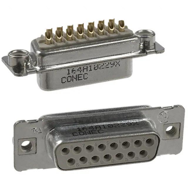 This is manufactured by Conec. The manufacturer part number is 164A10229X. 2 (da, a) is the shell size and connector layout. Furthermore, cable side (4-40) is the Flange Feature of the product. It is assigned with possible HTSUS value of 8536.69.8000. The product is rohs3 compliant. The product has -55°c ~ 125°c operating temperature range. It comes in d-sub connector style. It has 8.00µin (0.203µm) of contact finishing thickness. Moreover, the product is constructed from highly polybutylene terephthalate (pbt), glass filled dielectric material. The product carries possible position value of 15. Moreover, the product has a nominal 125v voltage rating. In addition, it is reach unaffected. It comes in 2 of rows. It carries ul94 v-0 of material flammability rating. It is shipped in tray. Moreover, the product has a wire gauge of 20 awg. It also has a machined contact form. receptacle, female sockets Connector type offer robust functionality. Furthermore, the product is galvanized with excellent gold contact finishing. Its typical moisture sensitivity level is not applicable. The product features solder cup termination style. It has a long 12 weeks standard lead time. Additionally, the product's output is 7.5a It is IP rated with ip20. The product is available in free hanging (in-line) configuration. It has a classic black colour. The product 164a, is a highly preferred choice for users. It is made from durable shell materials and has an excellent finishing such as steel, tin plated. It has typical contact type of signal. The product is made from sturdy copper alloy materials. Moreover, it corresponds to 164a102, a base product number of the product. The product is designated with the ear99 code number