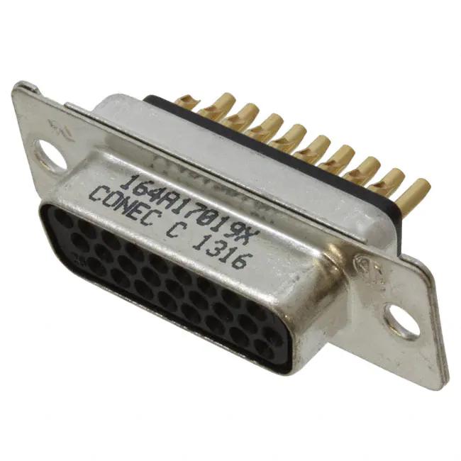 This is manufactured by Conec. The manufacturer part number is 164A17019X. 2 (da, a) high density is the shell size and connector layout. Furthermore, housing/shell (unthreaded) is the Flange Feature of the product. It is assigned with possible HTSUS value of 8536.69.8000. The product is rohs3 compliant. The product has -55°c ~ 125°c operating temperature range. It comes in d-sub, high density connector style. It has flash of contact finishing thickness. Moreover, the product is constructed from highly polybutylene terephthalate (pbt), glass filled dielectric material. The product carries possible position value of 26. Moreover, the product has a nominal 60v voltage rating. In addition, it is reach unaffected. It comes in 3 of rows. It carries ul94 v-0 of material flammability rating. It is shipped in bulk. Moreover, the product has a wire gauge of 22 awg. It also has a machined contact form. receptacle, female sockets Connector type offer robust functionality. Furthermore, the product is galvanized with excellent gold contact finishing. Its typical moisture sensitivity level is 1 (unlimited). The product features solder cup termination style. It has a long 12 weeks standard lead time. Additionally, the product's output is 3a It is IP rated with ip20. The product is available in free hanging (in-line) configuration. It has a classic black colour. The product 164a, is a highly preferred choice for users. It is made from durable shell materials and has an excellent finishing such as steel, tin plated. It has typical contact type of signal. The product is made from sturdy copper alloy materials. Moreover, it corresponds to 164a170, a base product number of the product. The product is designated with the ear99 code number