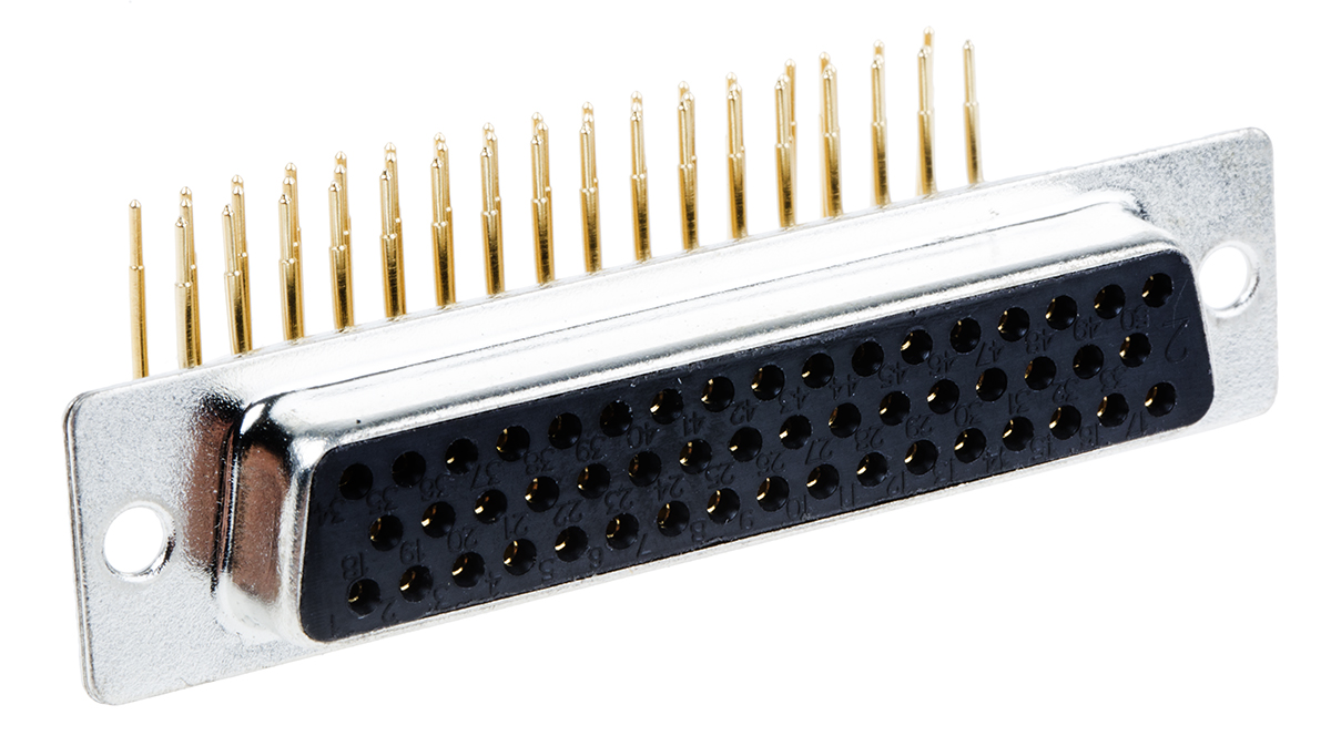 This is 50 Way Right Angle Through Hole PCB D-sub Connector Socket 2.77mm Pitch manufactured by RS Pro. The manufacturer part number is 528-3749. The product contains 50 contacts. The product has a current rating of 5.0a. The given dimensions of the product include 66.9 x 4.1 x 15.35mm. The product is available in through hole configuration. Moreover, the product has a nominal 250.0 v voltage rating. In addition, female is the available "Gender" of the product. Its accurate length is 66.9mm. The product also features robust steel housing material. Furthermore, the product is 4.1mm wide. The product comes in 15.35mm depth. Moreover, the product is 2.77mm The product is made from sturdy copper alloy materials. It has a maximum operating temperature of +125°c. Whereas, the minimum operating temperature of the product is -55.0°c.