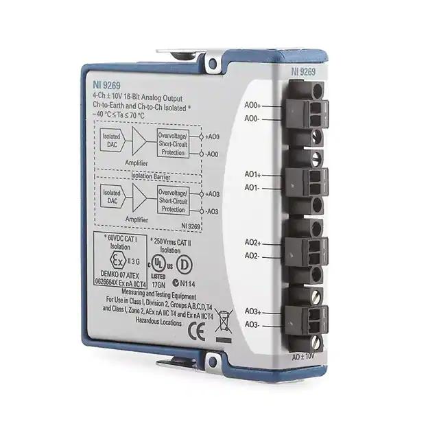 This is manufactured by NI. The manufacturer part number is 781098-02. It is assigned with possible HTSUS value of 8471.80.9000. The product is rohs compliant. Number and outputs type - 4 - analog. It comes in daq device configuration. It performs basic function of analog output. The product's sampling rate at per second is 100k. It is shipped in box. Its typical moisture sensitivity level is not applicable. It has a long 13 weeks standard lead time. The product c, is a highly preferred choice for users. The product is designated with the ear99 code number
