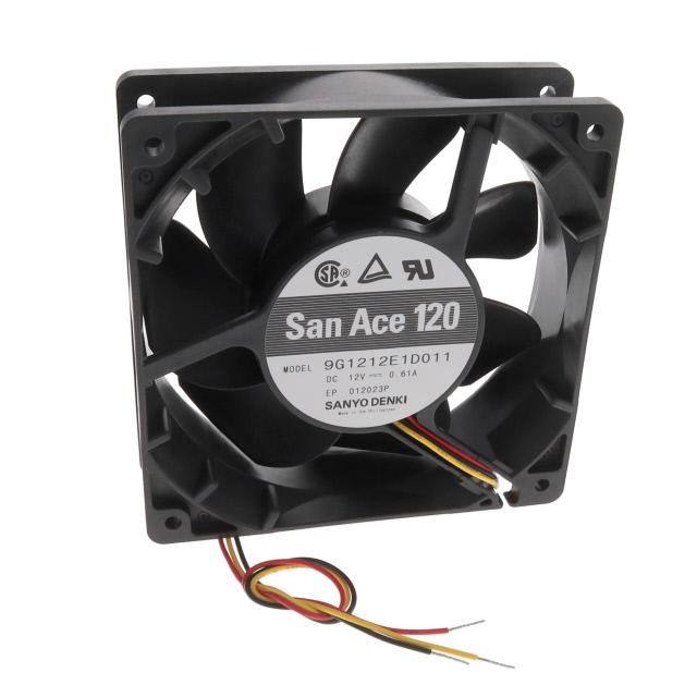 This is manufactured by Sanyo Denki America Inc.. The manufacturer part number is 9G1212E1D011. The blades are constructed from robust plastic materials. It is assigned with possible HTSUS value of 8414.59.6590. The product is rohs3 compliant. Furthermore, the product is 38.00mm wide. The product features power and watts of 7.32 w. It has a 118.0 cfm (3.30m³/min) air flow rate. It is approved by csa, tuv, ul. While the voltage range is 10.2 ~ 13.8vdc. It has noise values of 46.0db(a). It also exhibits voltage rating of 12vdc. This has integrated with a ball, a bearing with long-lasting features. The product has -4 ~ 158°f (-20 ~ 70°c) operating temperature range. It provides maximum rpm up to 3100 rpm. This product offers longer life span for 40000 hrs @ 60°c. The product has a 0.401 in h2o (100.0 pa) static pressure. It is shipped in box. The product's diameters include square - 119mm l x 119mm h. The product features 3 wire leads termination style. It has a long 55 weeks standard lead time. Additionally, the product's output is 0.610a Its typical moisture sensitivity level is not applicable. The splendid features of the product include locked rotor sensor. The typical product's weight is 0.728 lb (330.22 g). The product san ace 120, is a highly preferred choice for users. The frame of the product is made from highly durable plastic materials. The latest designed fan is a type of tubeaxial offering unmatchable applications. Moreover, it corresponds to 9g1212, a base product number of the product. The product is designated with the ear99 code number