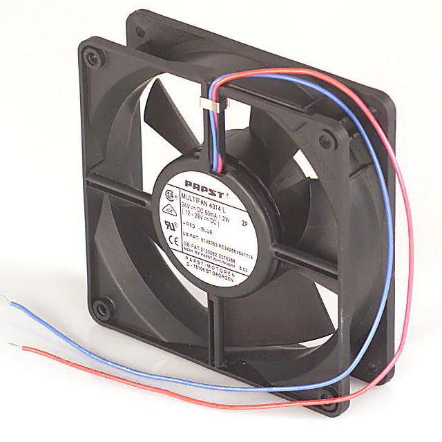This is manufactured by ebm-papst Inc.. The manufacturer part number is 4314L. The blades are constructed from robust polyamide (pa), nylon, fiberglass reinforced materials. It is assigned with possible HTSUS value of 8414.59.6590. The product is rohs3 compliant. Furthermore, the product is 32.00mm wide. The product features power and watts of 1.2 w. It has a 56.0 cfm (1.57m³/min) air flow rate. It is approved by ce, csa, ul, vde. While the voltage range is 12 ~ 28vdc. It has noise values of 30.0db(a). It also exhibits voltage rating of 24vdc. In addition, it is reach unaffected. This has integrated with a ball, a bearing with long-lasting features. The product has -4 ~ 167°f (-20 ~ 75°c) operating temperature range. It provides maximum rpm up to 1550 rpm. This product offers longer life span for 80000 hrs @ 40°c. It is shipped in bulk. The product's diameters include square - 119mm l x 119mm h. The product features 2 wire leads termination style. It has a long 88 weeks standard lead time. Its typical moisture sensitivity level is 1 (unlimited). The typical product's weight is 0.485 lb (219.99 g). The product 4300, is a highly preferred choice for users. The frame of the product is made from highly durable polybutylene terephthalate (pbt), fiberglass reinforced materials. The latest designed fan is a type of tubeaxial offering unmatchable applications. The product is designated with the ear99 code number