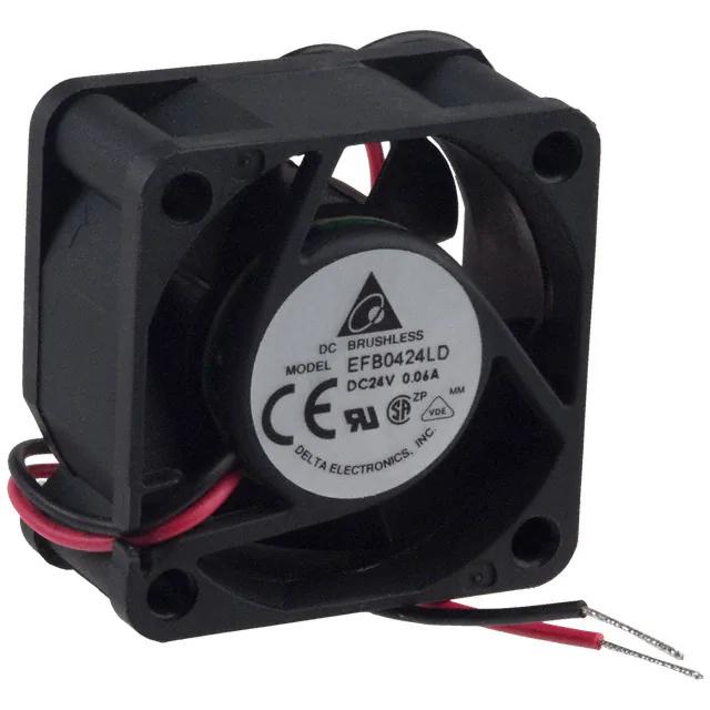 This is manufactured by Delta Electronics. The manufacturer part number is EFB0424LD. The blades are constructed from robust plastic materials. It is assigned with possible HTSUS value of 8414.59.6590. The product is rohs3 compliant. Furthermore, the product is 20.00mm wide. The product features power and watts of 960 mw. It has a 5.5 cfm (0.154m³/min) air flow rate. It is approved by ce, csa, ul, vde. While the voltage range is 14 ~ 27.6vdc. It has noise values of 22.0db(a). It also exhibits voltage rating of 24vdc. In addition, it is reach unaffected. This has integrated with a ball, a bearing with long-lasting features. The product has 14 ~ 158°f (-10 ~ 70°c) operating temperature range. It provides maximum rpm up to 5000 rpm. This product offers longer life span for 70000 hrs @ 40°c. The product has a 0.136 in h2o (33.9 pa) static pressure. It is shipped in tray. The product's diameters include square - 40mm l x 40mm h. The product features 2 wire leads termination style. Additionally, the product's output is 0.040a Its typical moisture sensitivity level is 1 (unlimited). The splendid features of the product include locked rotor protection. The typical product's weight is 0.073 lb (33.11 g). The product efb, is a highly preferred choice for users. The frame of the product is made from highly durable plastic materials. The latest designed fan is a type of tubeaxial offering unmatchable applications. Moreover, it corresponds to efb0424, a base product number of the product. The product is designated with the ear99 code number