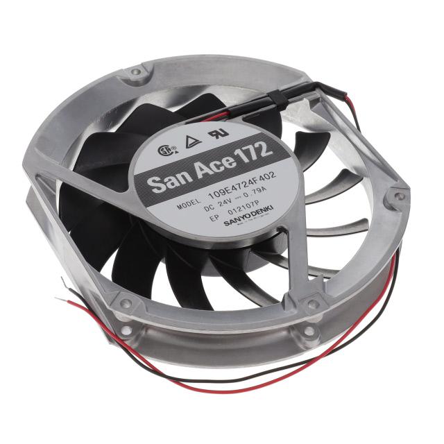 This is manufactured by Sanyo Denki America Inc.. The manufacturer part number is 109E4724F402. The blades are constructed from robust plastic materials. It is assigned with possible HTSUS value of 8414.59.6590. The product is rohs3 compliant. Furthermore, the product is 25.40mm wide. The product features power and watts of 19 w. It has a 204.0 cfm (5.71m³/min) air flow rate. It is approved by csa, tuv, ul. While the voltage range is 20.4 ~ 27.6vdc. It has noise values of 54.0db(a). It also exhibits voltage rating of 24vdc. This has integrated with a ball, a bearing with long-lasting features. The product has -4 ~ 140°f (-20 ~ 60°c) operating temperature range. It provides maximum rpm up to 3100 rpm. This product offers longer life span for 40000 hrs @ 60°c. The product has a 0.450 in h2o (112.1 pa) static pressure. It is shipped in box. The product's diameters include rectangular/rounded - 172mm l x 147mm h. The product features 2 wire leads termination style. It has a long 55 weeks standard lead time. Additionally, the product's output is 0.790a Its typical moisture sensitivity level is 1 (unlimited). The splendid features of the product include locked rotor protection. The typical product's weight is 1.1 lbs (500.0 g). The product san ace 172, is a highly preferred choice for users. The frame of the product is made from highly durable aluminum materials. The latest designed fan is a type of tubeaxial offering unmatchable applications. Moreover, it corresponds to 109e4724, a base product number of the product. The product is designated with the ear99 code number