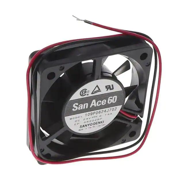 This is manufactured by Sanyo Denki America Inc.. The manufacturer part number is 109P0624J702. The blades are constructed from robust plastic materials. It is assigned with possible HTSUS value of 8414.59.6590. The product is rohs3 compliant. Furthermore, the product is 15.00mm wide. The product features power and watts of 3.36 w. It has a 21.5 cfm (0.602m³/min) air flow rate. It is approved by csa, tuv, ul. While the voltage range is 14 ~ 27.6vdc. It has noise values of 44.0db(a). It also exhibits voltage rating of 24vdc. This has integrated with a ball, a bearing with long-lasting features. The product has -4 ~ 140°f (-20 ~ 60°c) operating temperature range. It provides maximum rpm up to 6200 rpm. This product offers longer life span for 40000 hrs @ 60°c. The product has a 0.347 in h2o (86.4 pa) static pressure. It is shipped in box. The product's diameters include square - 60mm l x 60mm h. The product features 2 wire leads termination style. It has a long 55 weeks standard lead time. Additionally, the product's output is 0.140a Its typical moisture sensitivity level is 1 (unlimited). The splendid features of the product include locked rotor protection. The typical product's weight is 0.133 lb (60.33 g). The product san ace 60, is a highly preferred choice for users. The frame of the product is made from highly durable plastic materials. The latest designed fan is a type of tubeaxial offering unmatchable applications. Moreover, it corresponds to 109p0624, a base product number of the product. The product is designated with the ear99 code number