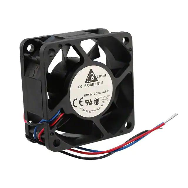 This is manufactured by Delta Electronics. The manufacturer part number is AFB0612VH-AF00. The blades are constructed from robust plastic materials. It is assigned with possible HTSUS value of 8414.59.6590. The product is rohs3 compliant. Furthermore, the product is 25.40mm wide. The product features power and watts of 2.76 w. It has a 30.5 cfm (0.854m³/min) air flow rate. It is approved by ce, csa, ul, vde. While the voltage range is 4 ~ 13.8vdc. It has noise values of 42.5db(a). It also exhibits voltage rating of 12vdc. In addition, it is reach unaffected. This has integrated with a ball, a bearing with long-lasting features. The product has 14 ~ 158°f (-10 ~ 70°c) operating temperature range. It provides maximum rpm up to 5500 rpm. This product offers longer life span for 70000 hrs @ 40°c. The product has a 0.345 in h2o (85.9 pa) static pressure. It is shipped in bulk. The product's diameters include square - 60mm l x 60mm h. The product features 3 wire leads termination style. Additionally, the product's output is 0.230a Its typical moisture sensitivity level is 1 (unlimited). The splendid features of the product include locked rotor protection, speed sensor (tach). The typical product's weight is 0.176 lb (80.00 g). The product afb, is a highly preferred choice for users. The frame of the product is made from highly durable plastic materials. The latest designed fan is a type of tubeaxial offering unmatchable applications. Moreover, it corresponds to afb0612, a base product number of the product. The product is designated with the ear99 code number