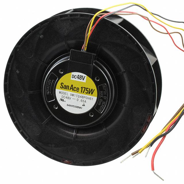This is manufactured by Sanyo Denki America Inc.. The manufacturer part number is 9W1TG48P0H61. The blades are constructed from robust plastic materials. It is assigned with possible HTSUS value of 8414.59.6590. The product is rohs3 compliant. Furthermore, the product is 69.00mm wide. The product features power and watts of 31.2 w. It has a 318.0 cfm (8.90m³/min) air flow rate. It is approved by csa, tuv, ul. While the voltage range is 36 ~ 60vdc. It has noise values of 64.0db(a). It also exhibits voltage rating of 48vdc. This has integrated with a ball, a bearing with long-lasting features. The product has -4 ~ 158°f (-20 ~ 70°c) operating temperature range. It provides maximum rpm up to 3100 rpm. This product offers longer life span for varies based on temperature. The product has a 1.441 in h2o (358.9 pa) static pressure. It is shipped in box. The product's diameters include round - 175mm dia. The product features 4 wire leads termination style. It has a long 55 weeks standard lead time. Additionally, the product's output is 0.650a Its typical moisture sensitivity level is 1 (unlimited). It is IP rated with ip54 - dust protected, water resistant. The splendid features of the product include pwm control, speed sensor (tach). The typical product's weight is 1.7 lbs (771.1 g). The product san ace 175w, is a highly preferred choice for users. The frame of the product is made from highly durable aluminum materials. The latest designed fan is a type of motorized impellers offering unmatchable applications. Moreover, it corresponds to 9w1tg48, a base product number of the product. The product is designated with the ear99 code number