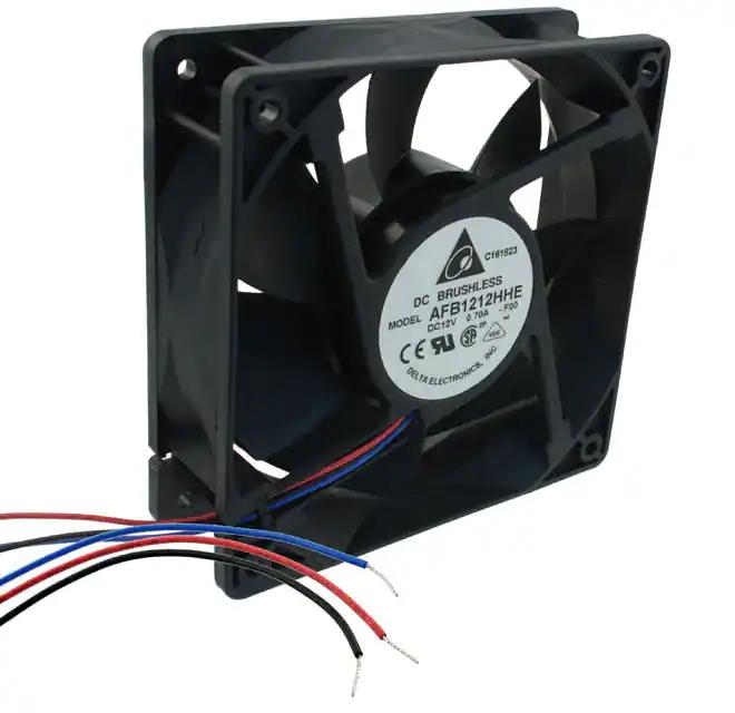 This is manufactured by Delta Electronics. The manufacturer part number is AFB1212HHE-F00. The blades are constructed from robust plastic materials. It is assigned with possible HTSUS value of 8414.59.6590. The product is rohs3 compliant. Furthermore, the product is 38.00mm wide. The product features power and watts of 5.52 w. It has a 120.1 cfm (3.36m³/min) air flow rate. It is approved by ce, csa, ul, vde. While the voltage range is 4 ~ 13.2vdc. It has noise values of 44.0db(a). It also exhibits voltage rating of 12vdc. In addition, it is reach unaffected. This has integrated with a ball, a bearing with long-lasting features. The product has 14 ~ 140°f (-10 ~ 60°c) operating temperature range. It provides maximum rpm up to 2900 rpm. This product offers longer life span for 70000 hrs @ 40°c. The product has a 0.354 in h2o (88.2 pa) static pressure. It is shipped in bulk. The product's diameters include square - 120mm l x 120mm h. The product features 3 wire leads termination style. Additionally, the product's output is 0.460a Its typical moisture sensitivity level is 1 (unlimited). The splendid features of the product include locked rotor protection, speed sensor (tach). The typical product's weight is 0.565 lb (256.28 g). The product afb, is a highly preferred choice for users. The frame of the product is made from highly durable plastic materials. The latest designed fan is a type of tubeaxial offering unmatchable applications. Moreover, it corresponds to afb1212, a base product number of the product. The product is designated with the ear99 code number