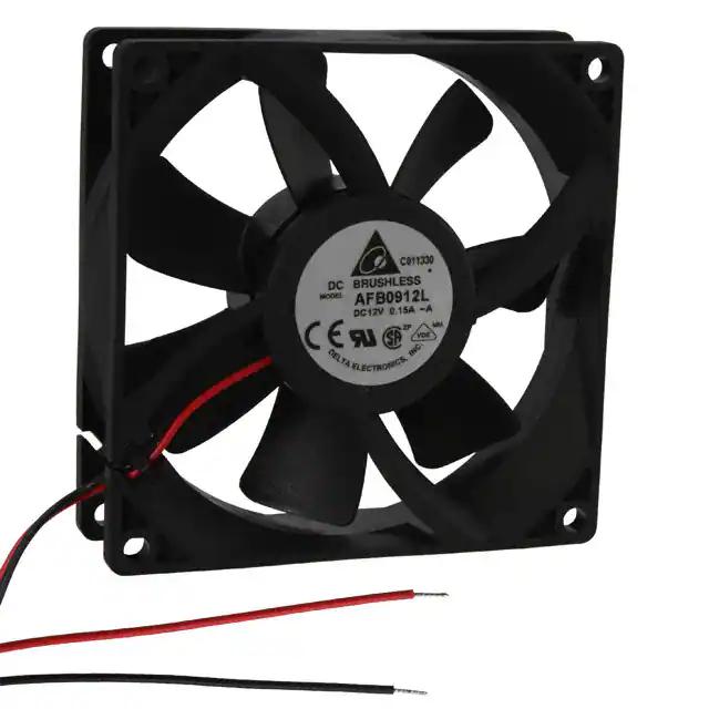 This is manufactured by Delta Electronics. The manufacturer part number is AFB0912L-A. The blades are constructed from robust plastic materials. It is assigned with possible HTSUS value of 8414.59.6590. The product is rohs3 compliant. Furthermore, the product is 25.40mm wide. The product features power and watts of 1.2 w. It has a 37.2 cfm (1.04m³/min) air flow rate. It is approved by ce, csa, ul, vde. While the voltage range is 5 ~ 13.8vdc. It has noise values of 25.0db(a). It also exhibits voltage rating of 12vdc. In addition, it is reach unaffected. This has integrated with a ball, a bearing with long-lasting features. The product has 14 ~ 158°f (-10 ~ 70°c) operating temperature range. It provides maximum rpm up to 1800 rpm. This product offers longer life span for 70000 hrs @ 40°c. The product has a 0.080 in h2o (19.9 pa) static pressure. It is shipped in bulk. The product's diameters include square - 92mm l x 92mm h. The product features 2 wire leads termination style. Additionally, the product's output is 0.100a Its typical moisture sensitivity level is 1 (unlimited). The splendid features of the product include locked rotor protection. The typical product's weight is 0.267 lb (121.11 g). The product afb, is a highly preferred choice for users. The frame of the product is made from highly durable plastic materials. The latest designed fan is a type of tubeaxial offering unmatchable applications. Moreover, it corresponds to afb0912, a base product number of the product. The product is designated with the ear99 code number