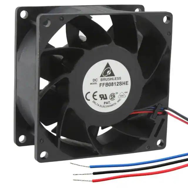 This is manufactured by Delta Electronics. The manufacturer part number is FFB0812SHE-F00. The blades are constructed from robust plastic materials. It is assigned with possible HTSUS value of 8414.59.6590. The product is rohs3 compliant. Furthermore, the product is 38.00mm wide. The product features power and watts of 6.96 w. It has a 68.5 cfm (1.92m³/min) air flow rate. It is approved by ce, csa, ul, vde. While the voltage range is 7 ~ 13.8vdc. It has noise values of 48.5db(a). It also exhibits voltage rating of 12vdc. In addition, it is reach unaffected. This has integrated with a ball, a bearing with long-lasting features. The product has 14 ~ 158°f (-10 ~ 70°c) operating temperature range. It provides maximum rpm up to 4900 rpm. This product offers longer life span for 70000 hrs @ 40°c. The product has a 0.591 in h2o (147.2 pa) static pressure. It is shipped in bulk. The product's diameters include square - 80mm l x 80mm h. The product features 3 wire leads termination style. Additionally, the product's output is 0.580a Its typical moisture sensitivity level is 1 (unlimited). The splendid features of the product include locked rotor protection, speed sensor (tach). The typical product's weight is 0.375 lb (170.1 g). The product ffb, is a highly preferred choice for users. The frame of the product is made from highly durable plastic materials. The latest designed fan is a type of tubeaxial offering unmatchable applications. Moreover, it corresponds to ffb0812, a base product number of the product. The product is designated with the ear99 code number